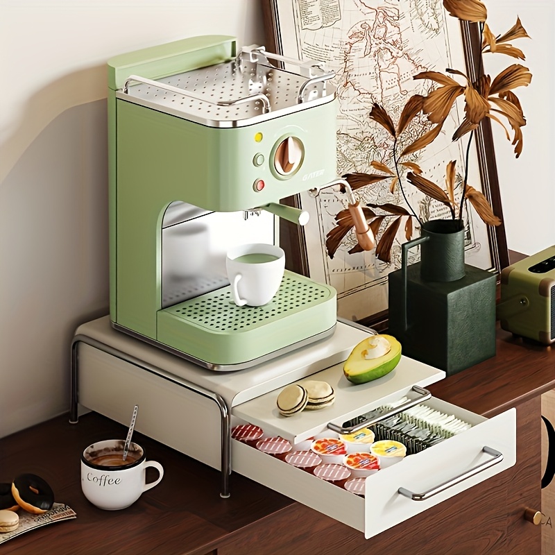Large Capacity Coffee Pod Holder with Pull-Out Drawer - Sleek Carbon Steel, Ideal for Home, Office, or Café - Modern Design in Black/White, Perfect for Coffee Bar & Machine Storage, Coffee Bar Cabinet