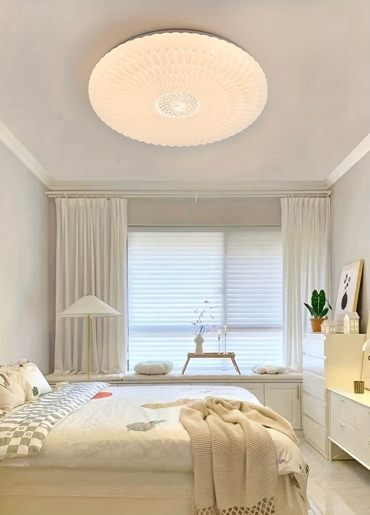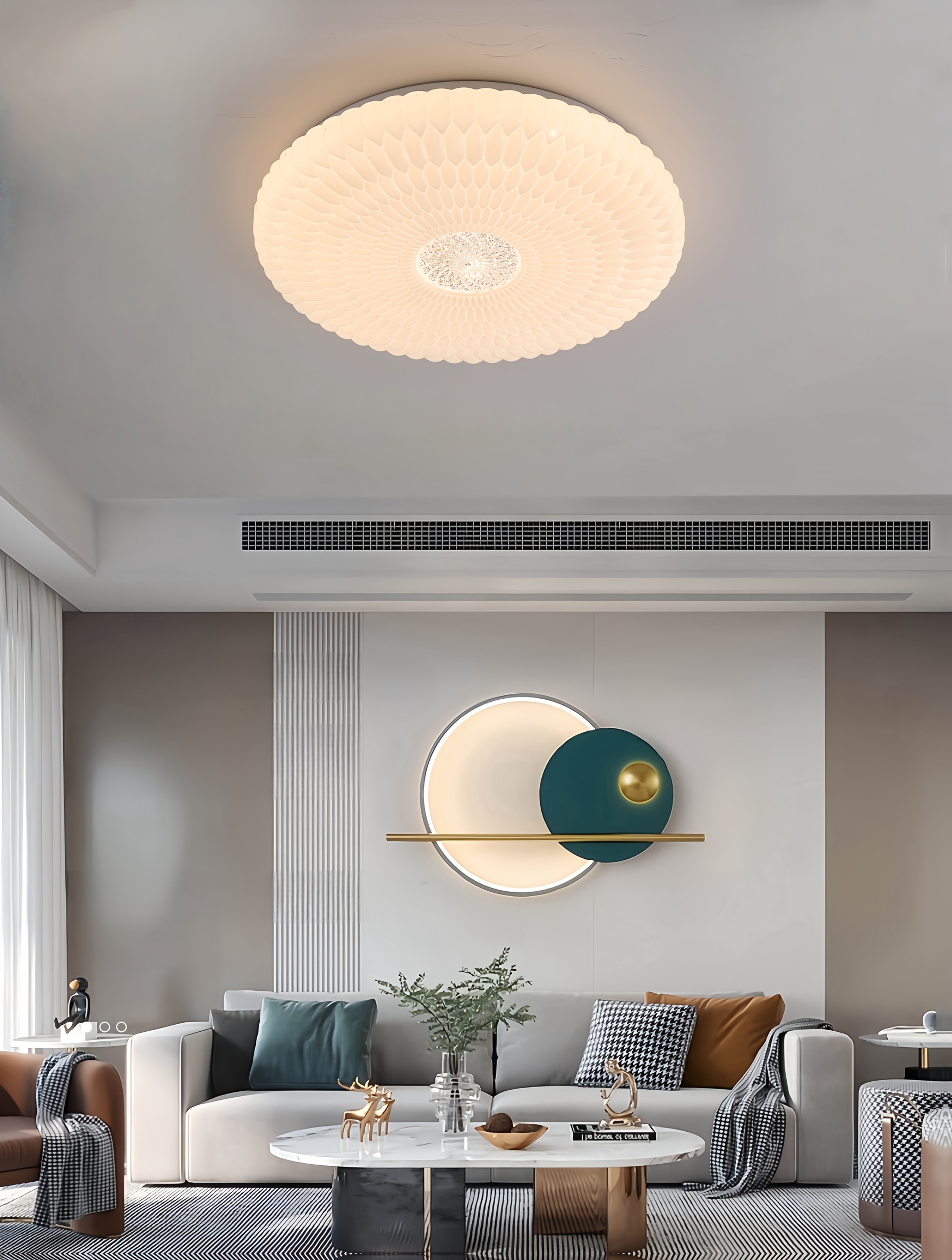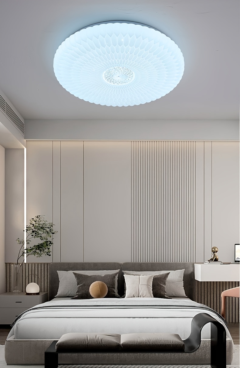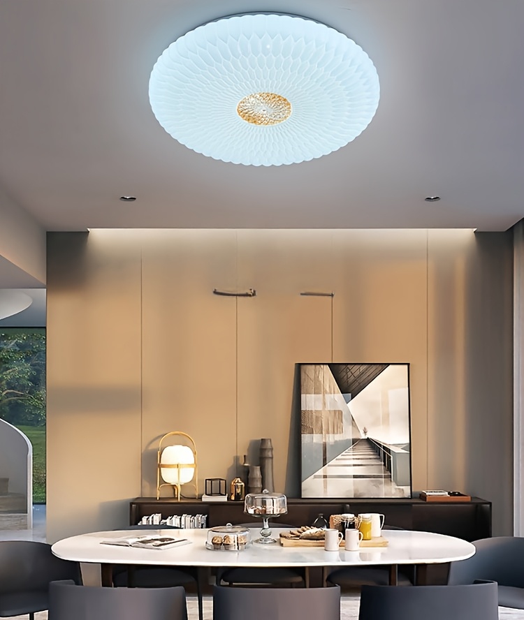 Modern Elegant Luxurious Feather-Shaped Round Acrylic Diamond Pattern Tri-Color Changing Ceiling Light with Easy Installation for Living Room, Bedroom, Study, Hallway, Bar - Product Does Not Include Switch Control