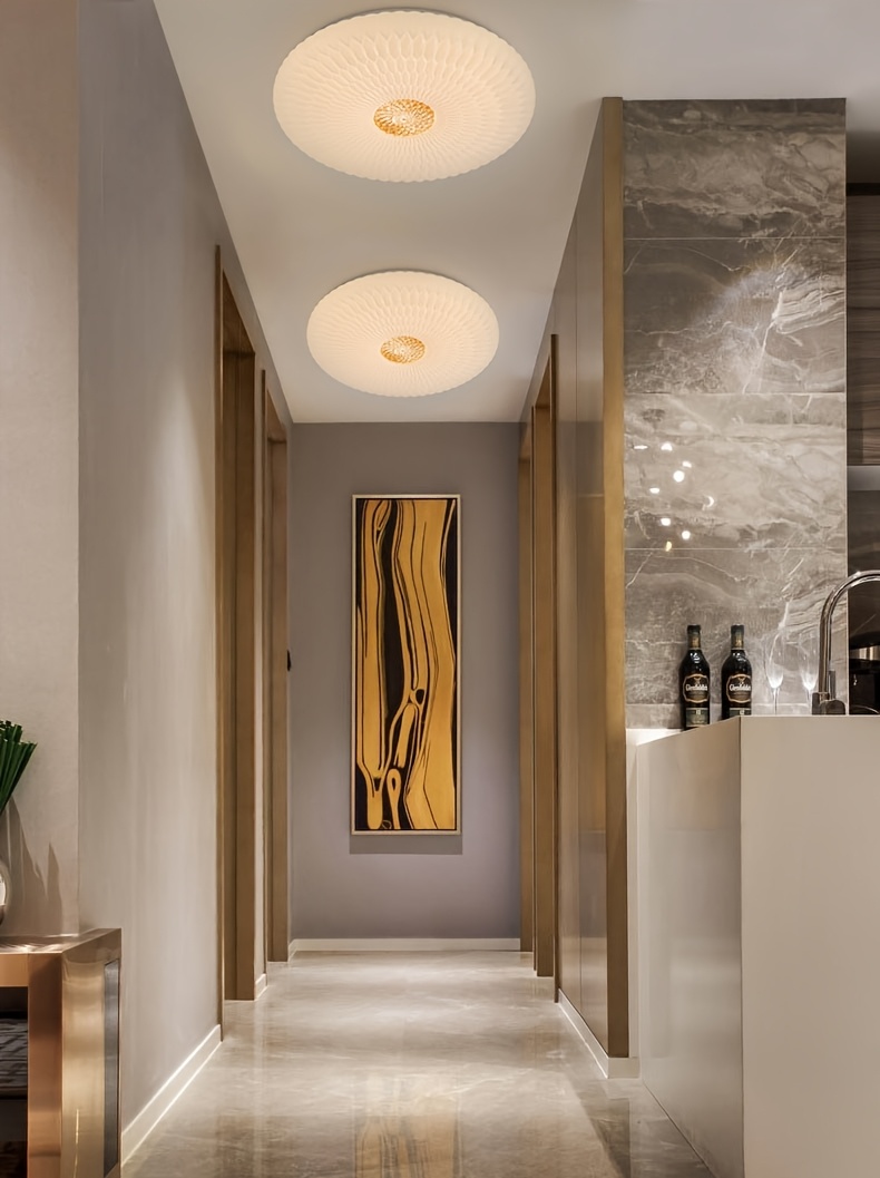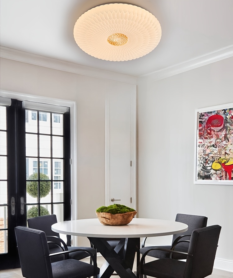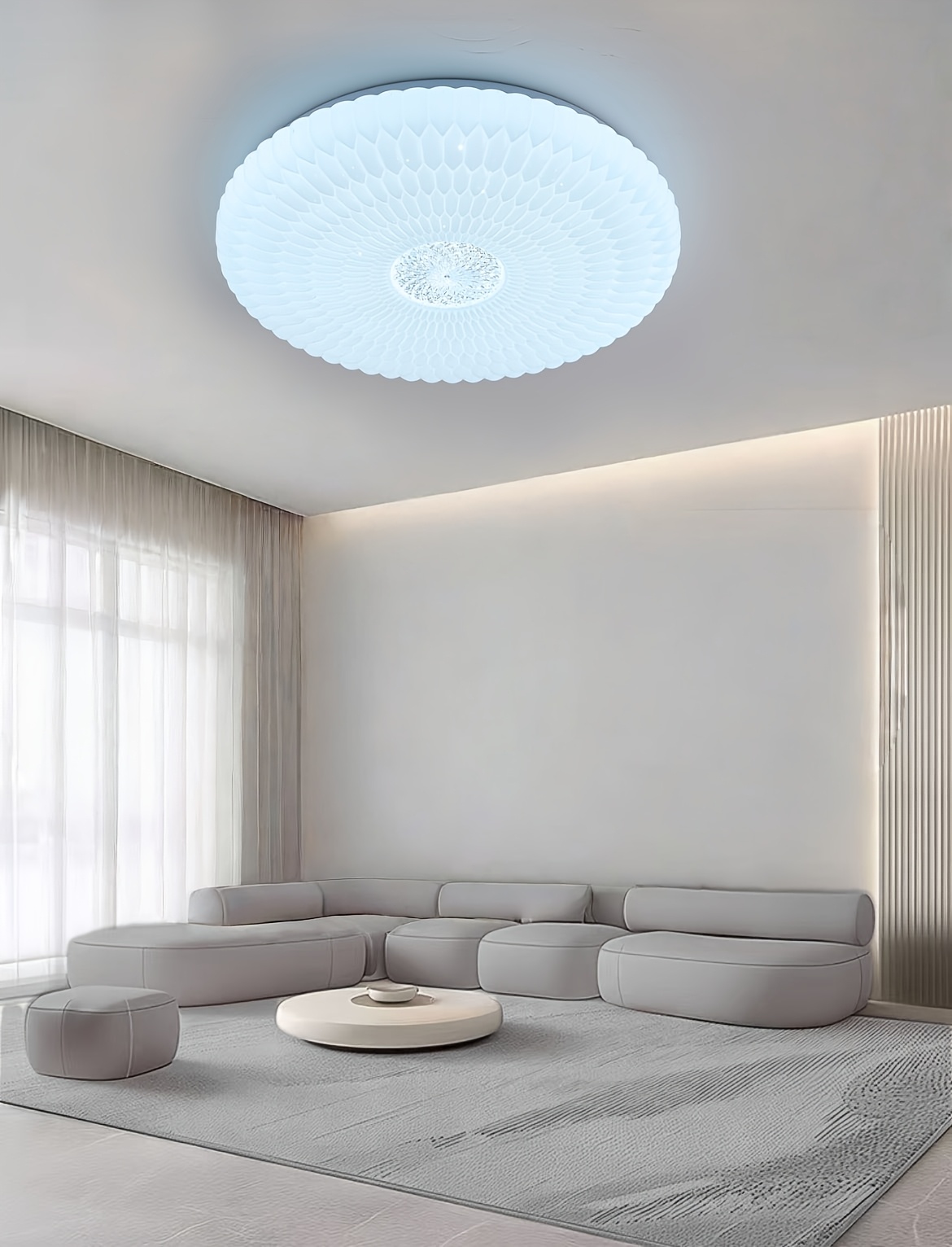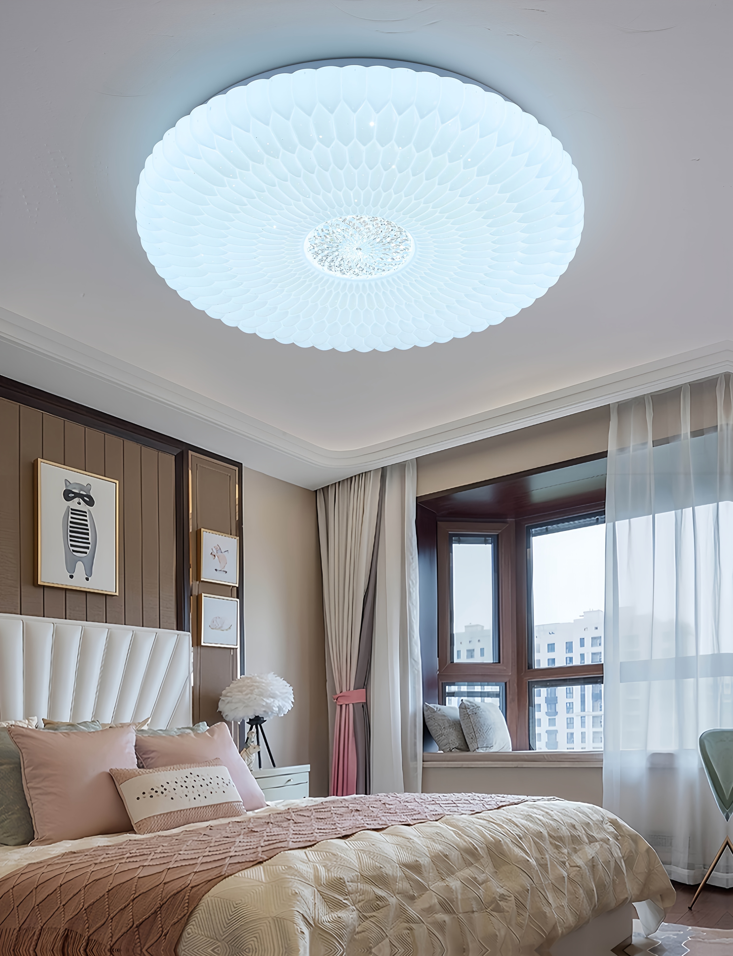 Modern Elegant Luxurious Feather-Shaped Round Acrylic Diamond Pattern Tri-Color Changing Ceiling Light with Easy Installation for Living Room, Bedroom, Study, Hallway, Bar - Product Does Not Include Switch Control