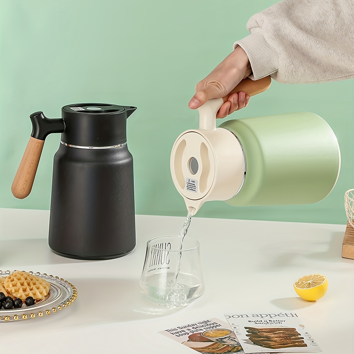 1-Pack Stainless Steel Thermal Carafe 1.5L - Double-Wall Vacuum Insulated Hot Water Pot, Coffee Dispenser, Office Tea Flask, Heat Retention, Uncharged, No Battery Needed