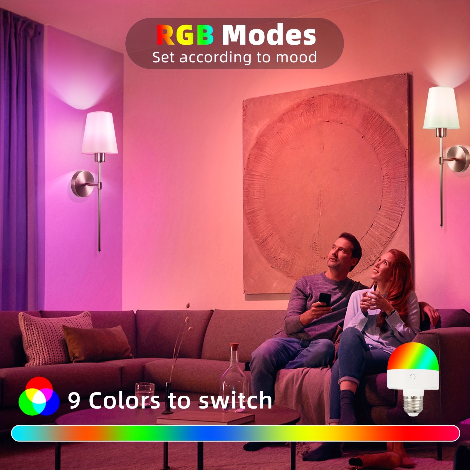 2-Pack Rechargeable Wall Lamp with Remote Control, Black/Golden Battery Powered Wall Light with Cordless White Fabric Shade, Non-Hardwired for Living Room, Bedroom, Hallway Decor (Color Adjustable), Wall Lights for Living Room, Bedroom Lighting, Modern Lighting, Durable Lighting