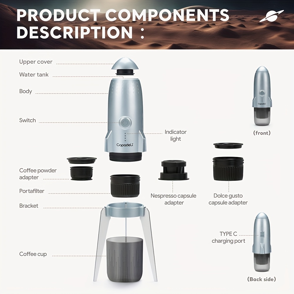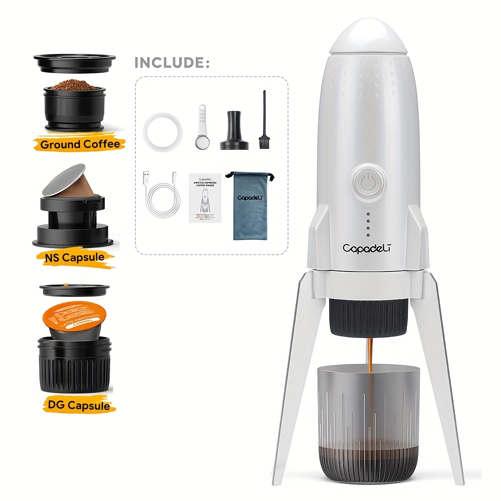 3-in-1 Portable Electric Espresso Machine Travel Coffee Maker For Camping Self-Heating Compatible With Ground Coffee & & NES Original Capsule Pods