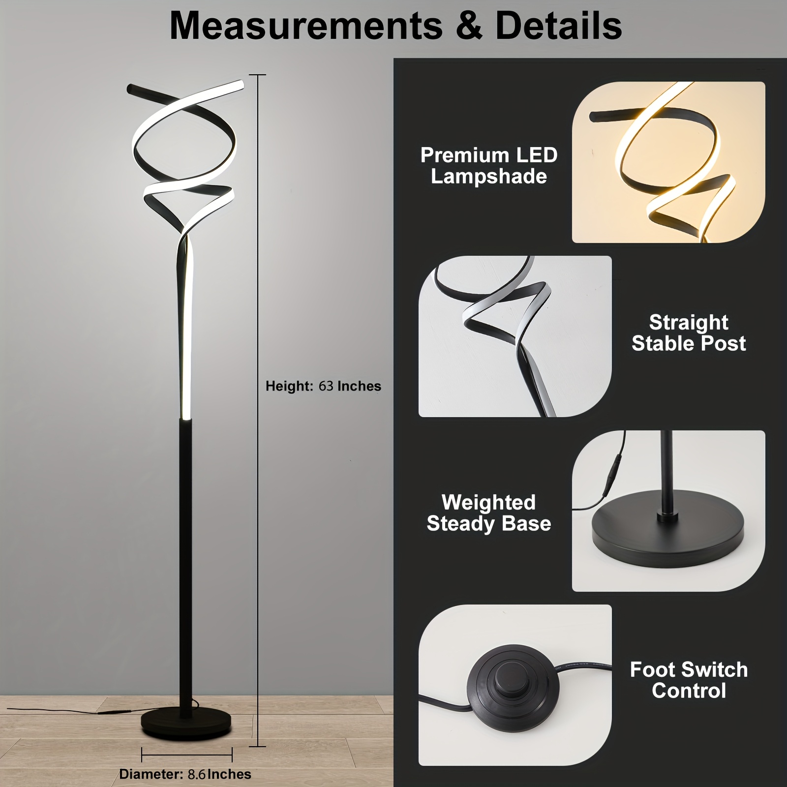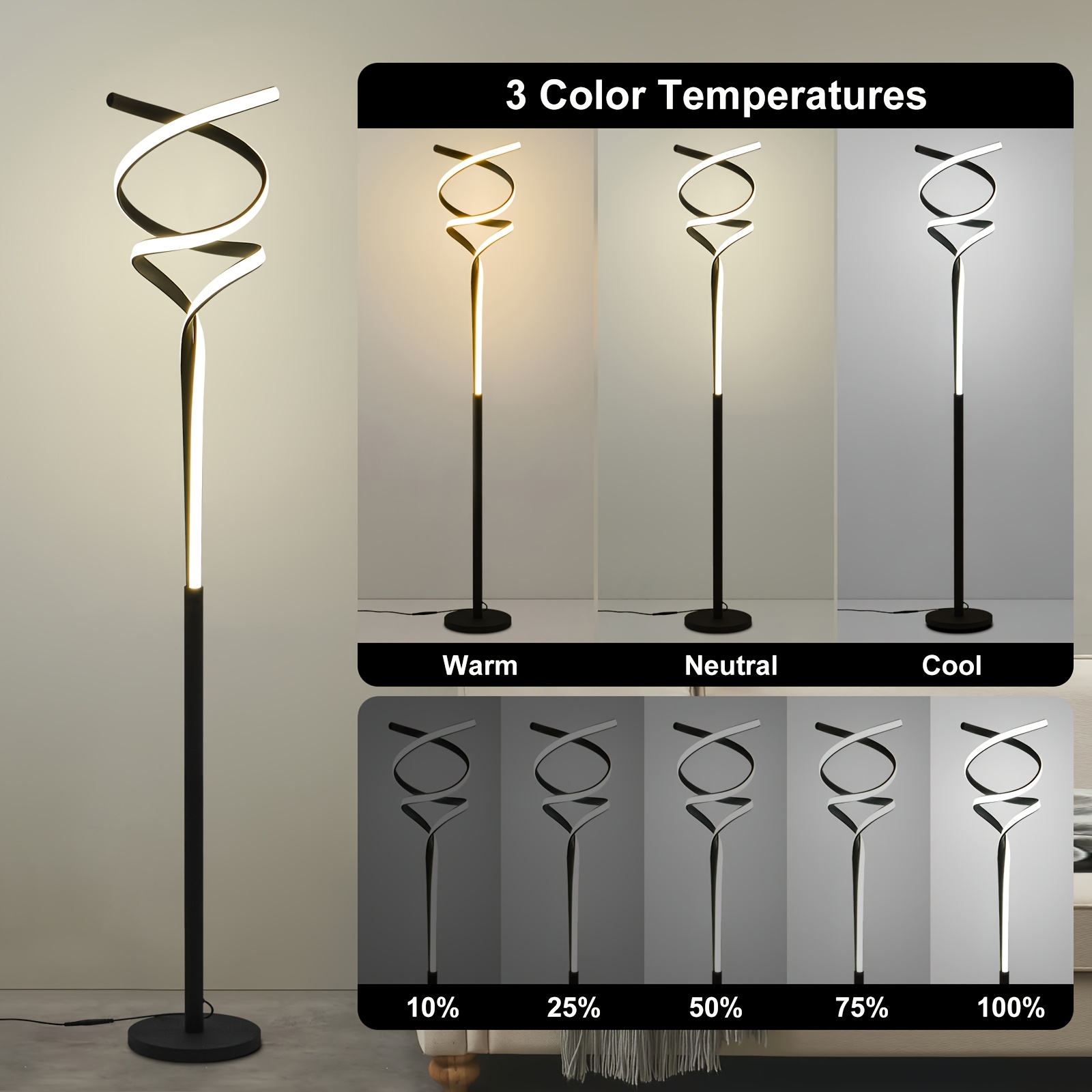 63" LED Spiral Floor Lamp Dimmable Contemporary Floor Lamps 34W Standing Lamp With Timer Corner Lamp Modern Floor Lamp For Living Room Bedroom Kitchen Office