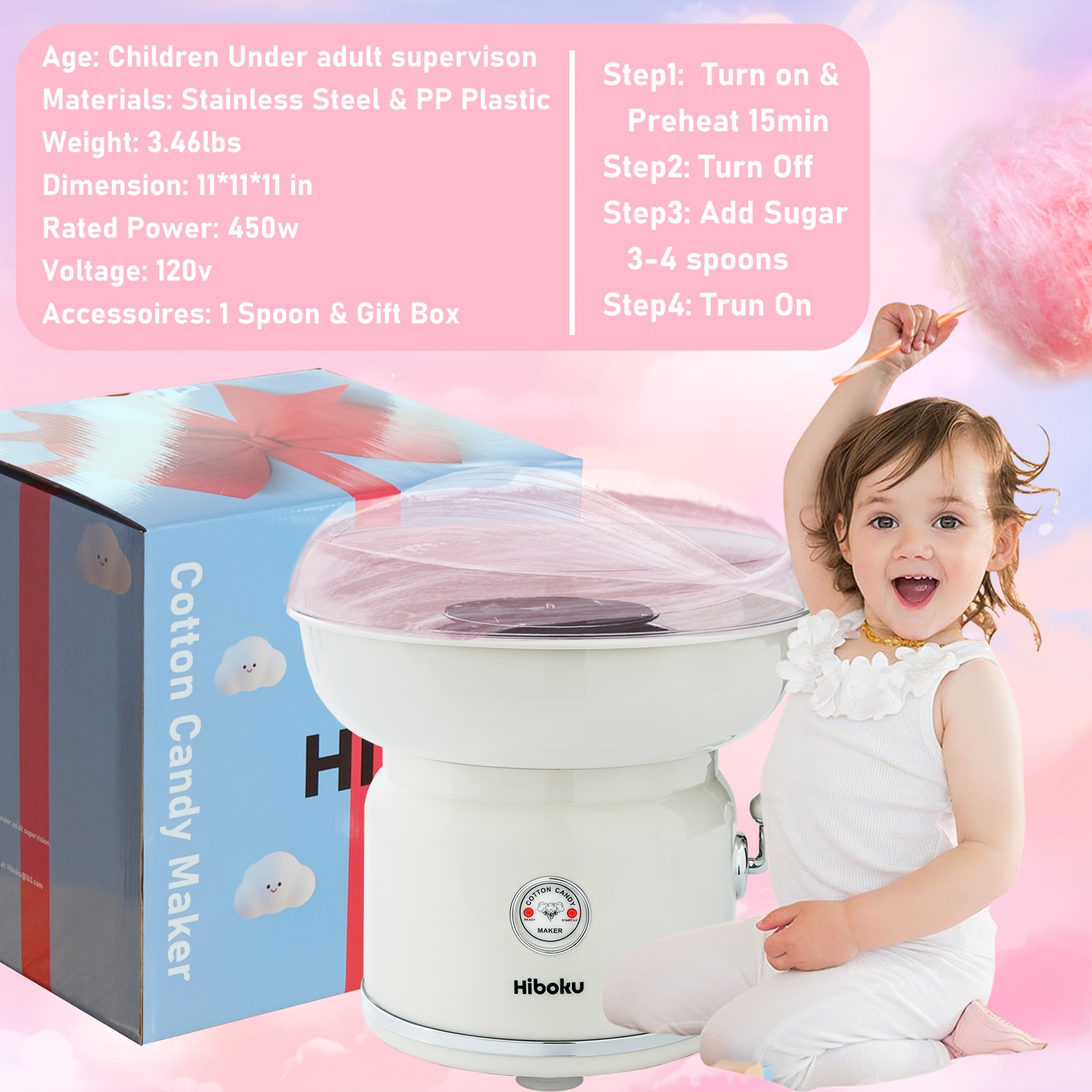 Hiboku Candy Machine, Electric Home Candy Maker, Suitable for Kids, Birthdays, Parties, Comes with a Sugar Scoop, White Color.