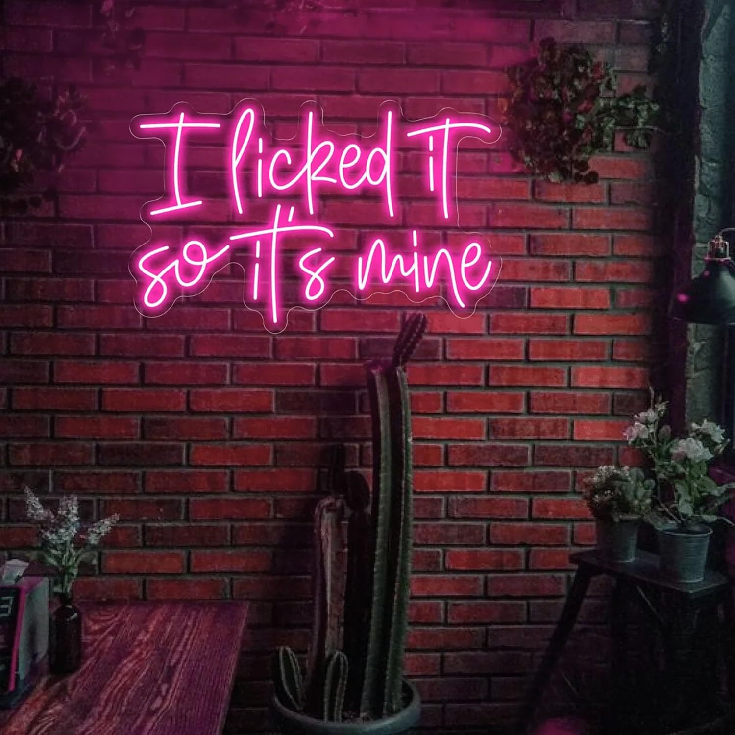 I Licked It So It'S Mine" Neon Sign - USB-Powered LED Wall Art with Adjustable Brightness Switch, Red & White Text, Perfect for Bars, Clubs, Weddings, Birthdays, and Home Decor, Neon Signs for Wall Decor, Neon Light Sign, Neon Sign For Wall Decor, St Birthday Decoration For Her, Gym Led Sign, Led Light That Shines Blue With Red, Neon Led For Wall