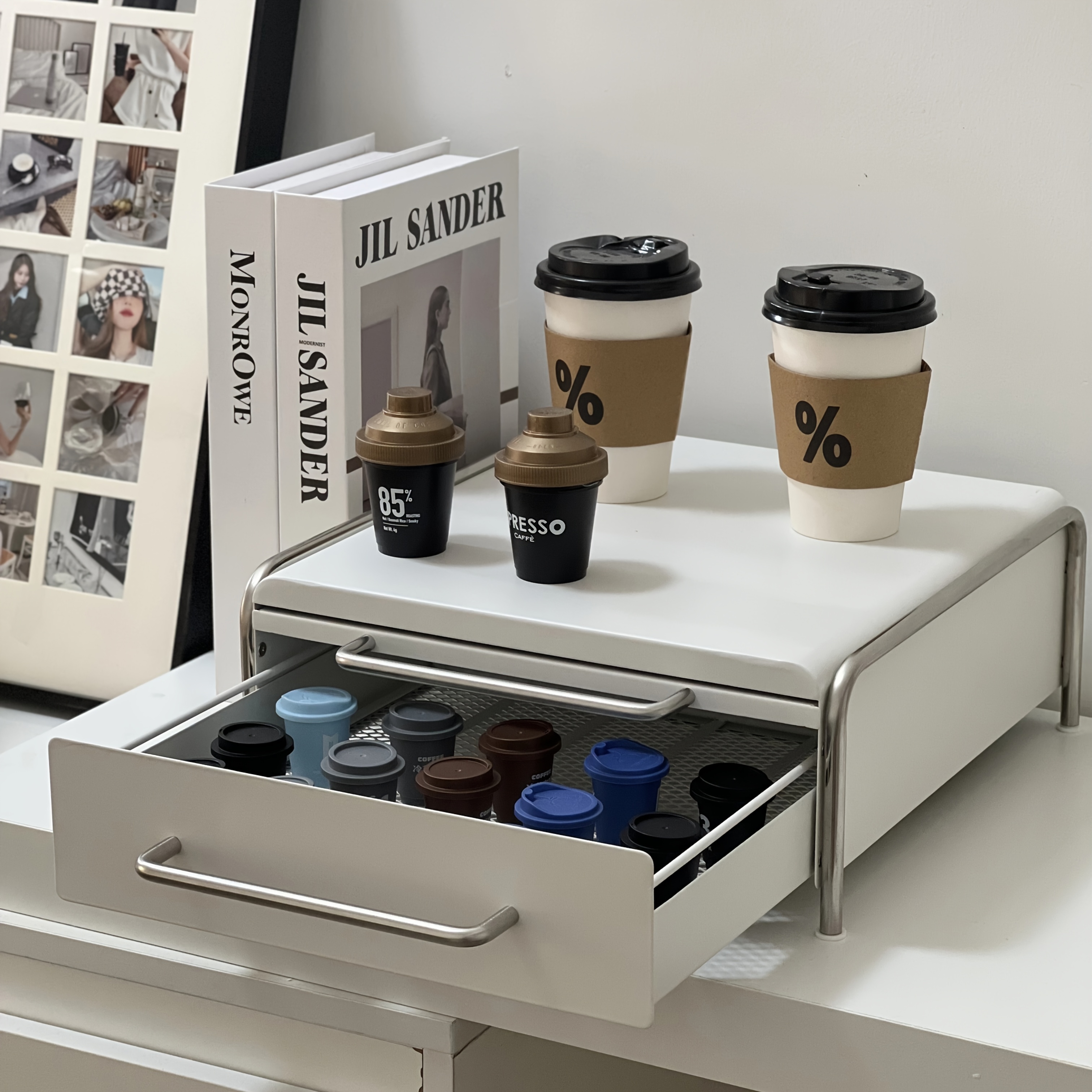 Large Capacity Coffee Pod Holder with Pull-Out Drawer - Sleek Carbon Steel, Ideal for Home, Office, or Café - Modern Design in Black/White, Perfect for Coffee Bar & Machine Storage, Coffee Bar Cabinet
