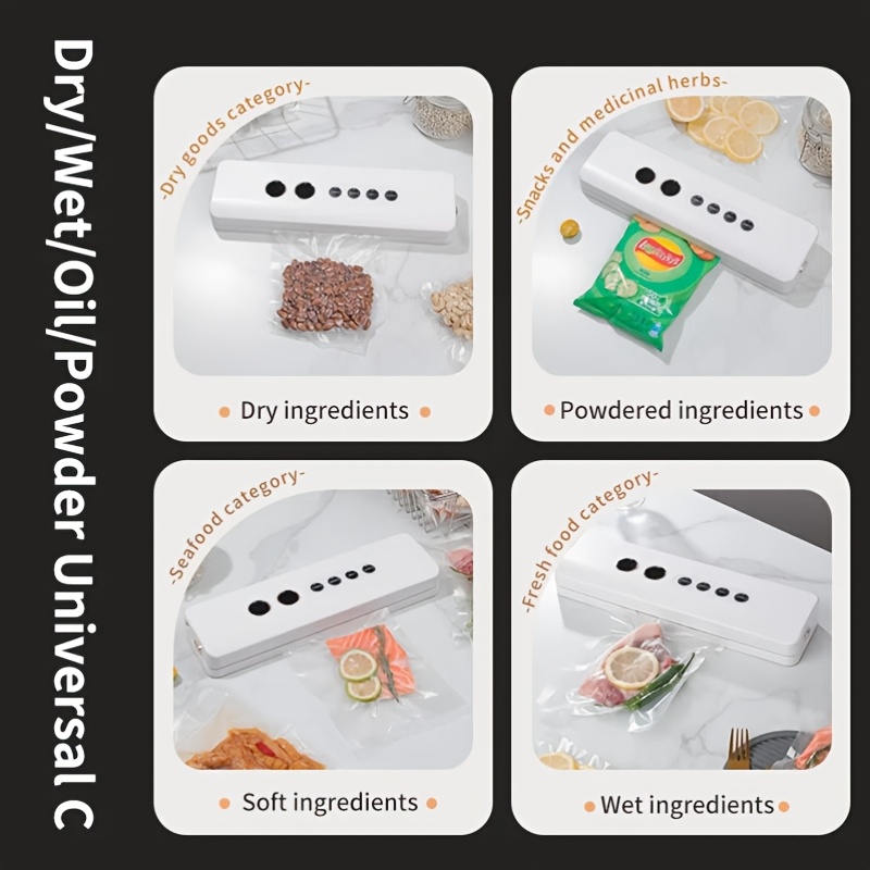 Portable Home Food Vacuum Sealer, Suitable for Both Dry And Wet Sealing, with Long Standby Time And Quick Sealing. It Features a Detachable Sealing Mechanism for Easy Cleaning And Storage.